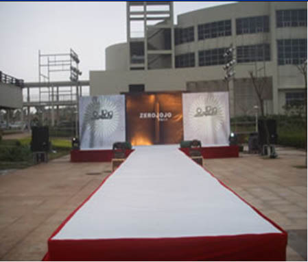 會議召開時間2007年12月08日 會場選用華城興隆度假村 會場風格選用服裝秀常用的T型舞臺,長度:18米,燈光用成像燈,成像燈可讓服裝不變色彩,可保服裝的原色,讓客戶看到服裝的效果,加深客戶所看到的效果和簽單。